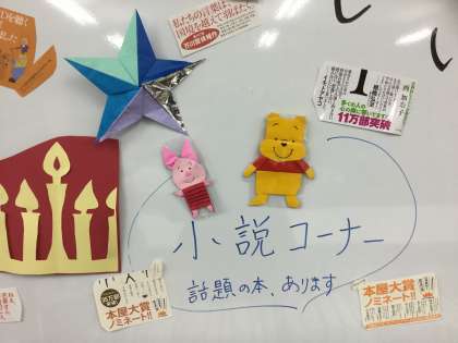 掲示は見るだけでも価値のある力作です。一度図書室を覗いてみてください。クマのプーさんが待っています。