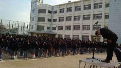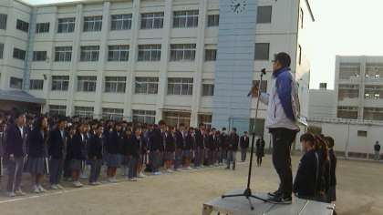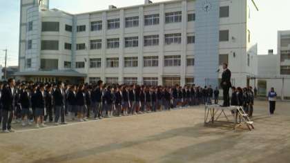 12月11日(月)冷え込んだグラウンドで全校集会が行われました。
