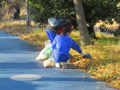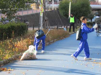 8時30分より、大野川緑陰道路クリーン大作戦に参加です。竹ぼうきやちりとり等の清掃用具を持ち寄り、地域ごとに集まっての活動でした。秋の紅葉も終わり、大量の落ち葉があり、たくさん回収し各所でビニール袋に詰めました。