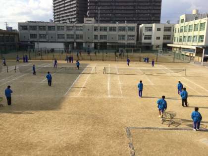 午前中のみの授業で帰宅となり、昼食後には部活動も開始となりました。グラウンドでは強めの風が吹いていましたが、テニス部員やサッカー部員が元気にプレーしていました。