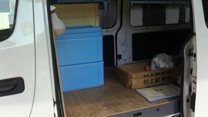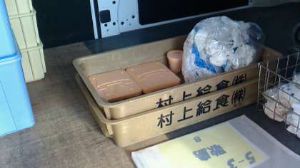 給食工場で作ったデリバリー給食は、いつも大きなトラックで学校に運ばれてきます。今日は見かけぬワゴン車での納品・容器回収でした。