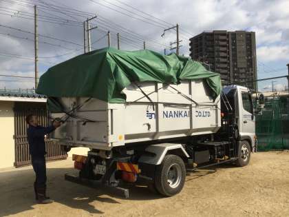 粗大ごみを積込んだアームロール車は、荷台全体にシートをかぶせられて処分場へ向かっていきました。粗大ごみと呼ばれた物品は、長年多くの生徒達の活動に貢献してきた品物ばかりです。長きにわたりご苦労様でした。