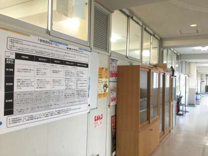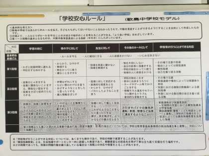 終業式後、生徒を通して配付させていただきました。また職員室前の廊下には「学校安心ルール」(歌島中学校モデル)を拡大して掲示させていただきました。