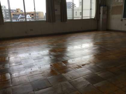 床が乾いてからワックスがけをしました。生徒達が率先してモップにてワックスを伸ばし、隅から隅までまんべんなく丁寧に塗っていました。何度もワックスを上塗りして光沢が増し、ピカピカに輝いていました。
