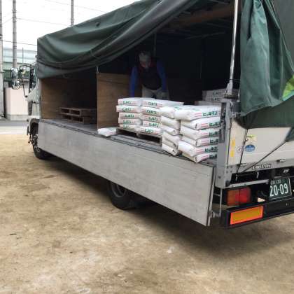 学校で使う物品も、「初荷」として納入が始まりました。1月5日(金)の午前中には、大きなトラックで石灰の納入がありました。第1グラウンドの体育倉庫・第2グラウンドの倉庫にそれぞれ50袋納められました。