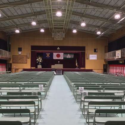 3月7日(水)〜3月14日(水)の卒業証書授与式終了後まで間、イスを並べたままの状態ですので体育館を利用する事が出来ません。
