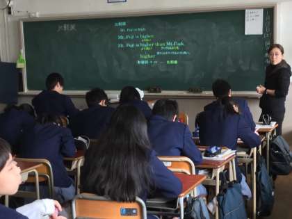 2年生では2つのクラスで英語の比較級の授業がありました。それぞれの先生が工夫をした授業で、生徒達は楽しげに学んでいました。