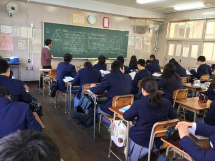 2年生の数学の授業では、直角三角形の合同条件を学んでいました。生徒達が一生懸命学んでいました。
