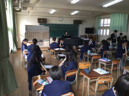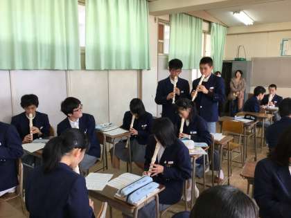 音楽の授業では、アルトリコーダーで「おおきな古時計」をグループになっての練習でした。