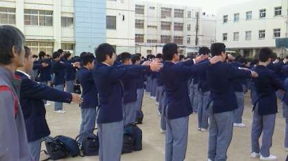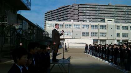 1月15日(月)の朝は厳しい冷え込みの中、3学期初めての全校集会をグラウンドで行いました。