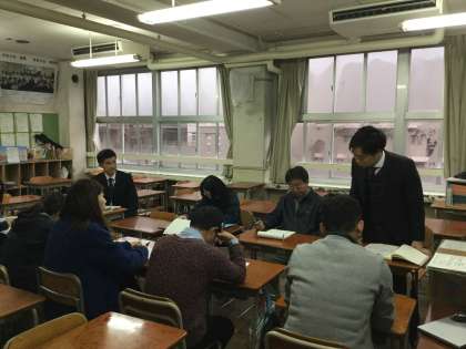 研究授業の後は、研究授業の教科別に全教員が別れて、研究協議会を行いました。