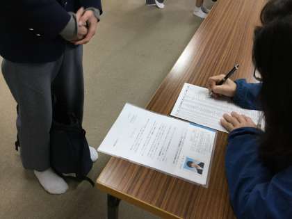 1月25日(木)午後に、3年生で私立高校を受験する生徒が出願をしました。