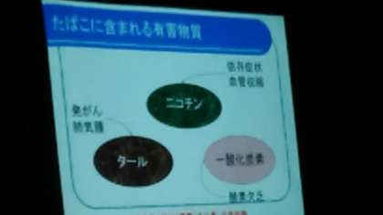 基礎的な「がん」の説明に始まり、中学生にとってこれから誘惑を受けやすいタバコとの関係についても、分かりやすく説明していただきました。2年生の生徒たちは、真剣に学習していました。他校の先生方も、数名来校されてました。