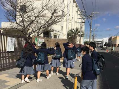 今日はテスト1日目で、国語・理科と音楽のテストがありました。生徒はテスト終了後すぐに、先生方に見送られて校門から帰宅の途につきました。