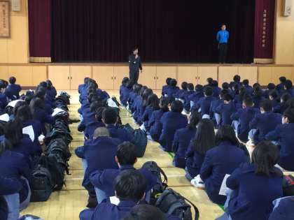 明日の私立高校入学試験に向けての事前指導が、2月9日(金)の6時間目に体育館でありました。