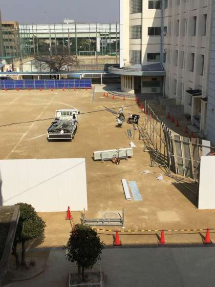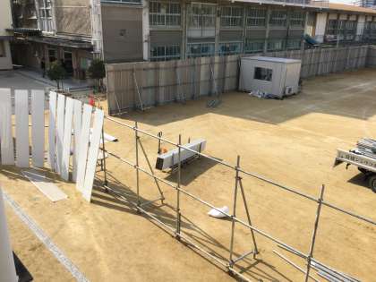 2月9日(金)の工事では、3号館から中庭前を経て1号館にかけての塀設置工事でした。