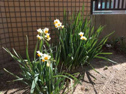 お昼前の一時だけ太陽があたる、風が吹き抜ける寒い場所です。仲間の花が群生しているわけでもないのに、寒さに耐えて花を咲かせています。