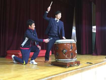 競技の進行は、舞台上の大太鼓の合図でスタートです。