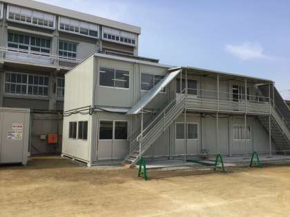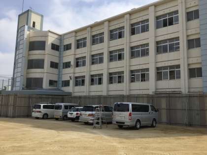 新校舎建設に関連する工事が始まり約1か月たちました。塀で囲われているはどの方向にも、教室が建っています。各学年各方向から生徒達が、興味を持ってよく工事現場を観察しているようです。あたかも管制塔から「はたらく車」を見るようなまなざしで。