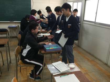 各高校で出願後は、歌島中学校の3年控室に学校ごとに帰ってきました。