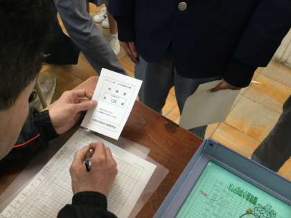 3時間目まで授業を行い、4時間目に昼食を済ませて、担任から願書書類一式を受け取り、学校ごとにまとまって出願に向かいました。
