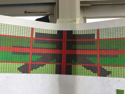 全体像からパソコン部員が、窓毎の図面を描きパートごとに分けた設計図を作ってくれました。総合の時間に生徒達が、設計図に基づいた色の色画用紙から、大量の葉っぱを切り抜いていきました。