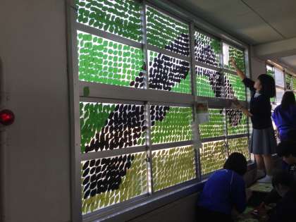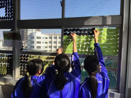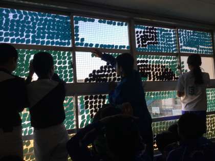 学年末テストの疲れも見せず、20,160枚の葉っぱからなる3年生への思いを載せた作品が完成しました。生徒の皆さん・先生方ご苦労様でした。