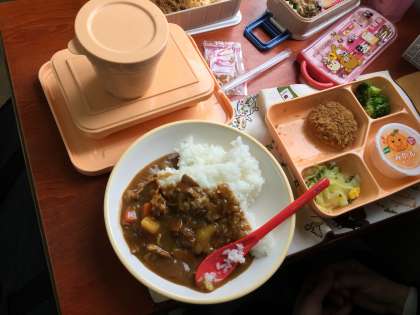 教室のあちらこちらで、2人〜5人ほどのグループで集まっての昼食でした。