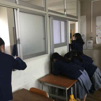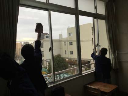 どのクラスもガラスをきれいに磨いていました。