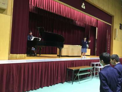 音楽科の泊先生による歌の練習では、卒業生の歌「旅立ちの日に」が、男女のパートに分かれて、何度か練習を行いました。