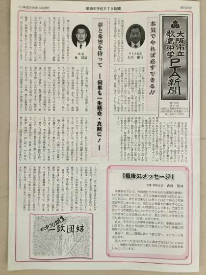 大阪市立歌島中学校PTA新聞を配付させていただきました。
