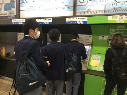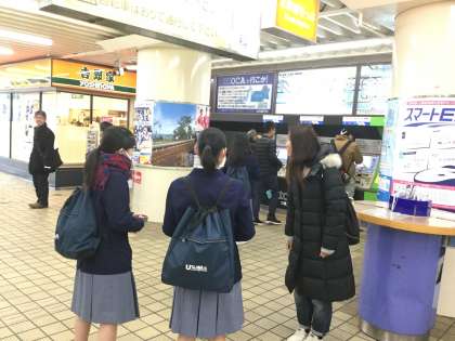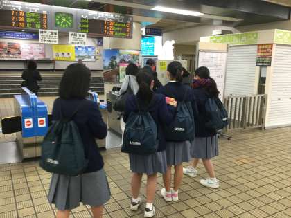 今朝7時20分頃の塚本駅での生徒達の様子です。生徒達は先生の周りに集まって会話を交わし、切符購入後同一方向の友を誘いながら改札口をとおり、試験会場の高校へと向かっていきました。