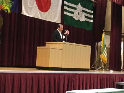 卒業証書授与式には、市議会議員さん、連合町会長さん、高等学校長・小学校長・幼稚園長さん、PTAの方々、地域の団体の方々と、多くの方が祝福に来てくださいました。来賓を代表して大川PTA会長から祝辞をいただきました。