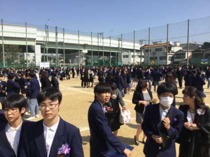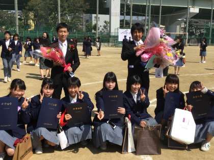 部活動での仲間と集まっているグループ。部活動で集まりに顧問の先生が加わり写真を取るグループも。卒業への思いは尽きることなく、思い思いに過ごしていました。