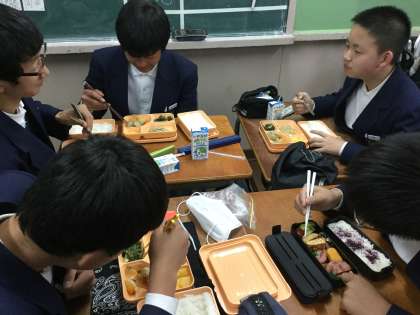 生徒達は机を接している生徒と談笑しながらの、楽しいお昼のひと時を過ごしました。この学年で、このメンバーともあとわずかとなりました。