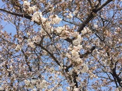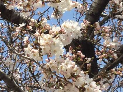 昨日の朝の状況では、幹に近い方や地面に近い方の枝で咲いてはいましたが、上の方は大半がつぼみで2〜3分咲きの感じでした。