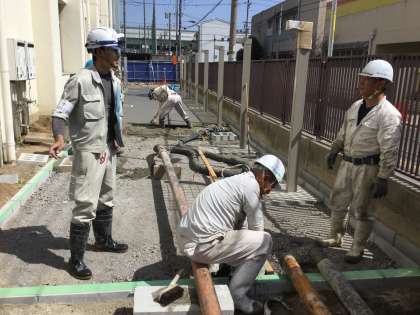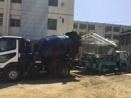 3月30日(金)に自転車置き場の床面のコンクリート打設がありました。