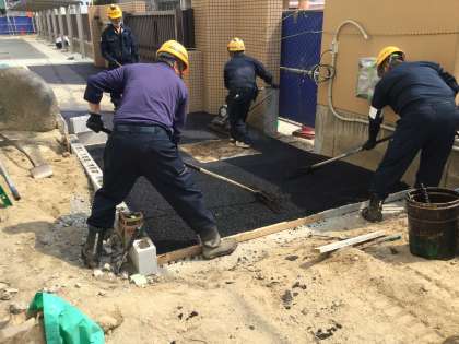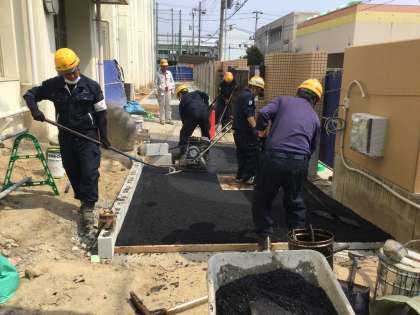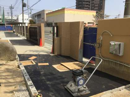 4月4日(水)に、1号門周りにアスファルト舗装が行われました。1号門は工事期間中の仮正門となります。