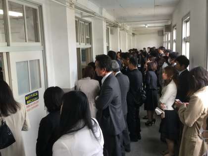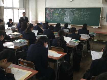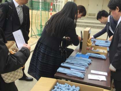 教室では担任の自己紹介等があり、教室の後ろも廊下も保護者の方でいっぱいでした。