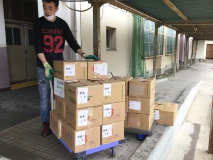 4月6日(金)の午後に、新学年用の副教材が業者さんより搬入がありました。3号館1階の被服室、4号館1階の第2理科室へ運びこまれました。