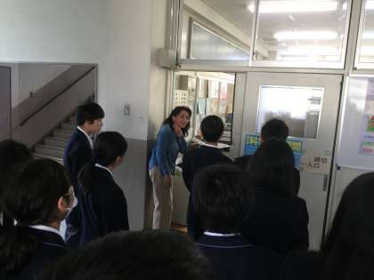 職員室に用があるときには、ノックをしてから「失礼します」。自分の所属と名前を名乗り、要件を言い先生を呼びます。用件が済んだら「失礼しました」と先生の実演を交えて説明を受けていました。
