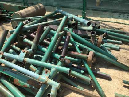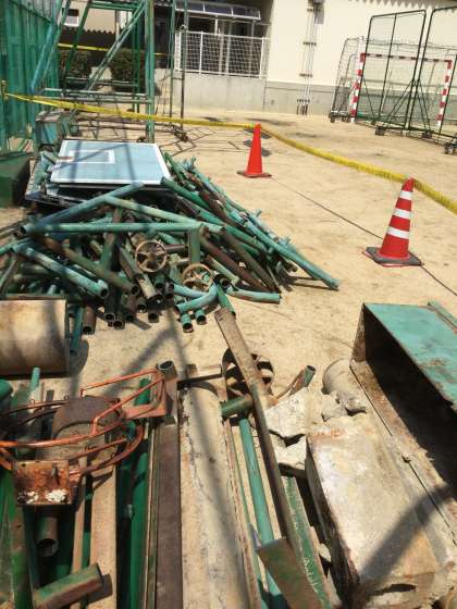 ゴールは切り刻まれて、1メートルほどの長さのパイプとなりました。肉厚5mmほどの切断されたパイプが積み上げられていました。また重しとして利用されたコンクリートやゴールとして使われていたボードも切り離されていました。