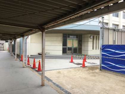 プール横の渡り廊下を利用することができなくなるため、今後5・6号館へ行くときは、3号館・4号館・5号館を経由していくことになります。特別教室へ行くときは時間を要すことになりました。不便になりますがよろしくお願いいたします。