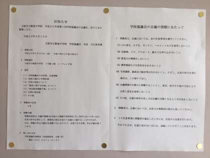 大阪市立歌島中学校 平成30年度第1回学校協議会の会議を、次の