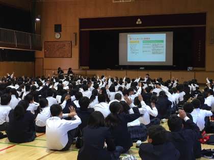 授業のあと学年主任の石濱先生から、1年生の聞く態度が良かったとお褒めの言葉をいただきました。
