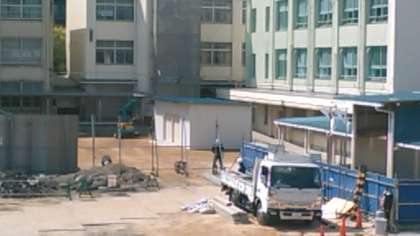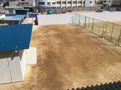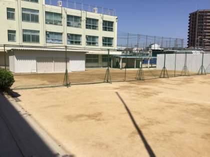 今まで新しい体育倉庫ができるまでは、4号館前の狭い部分で、体育の授業やいろんな部活動をしてきました。体育倉庫新設工事の終了に伴う、塀の位置変更作業が終わり、学校が使用できる運動場部分が広くなりまました。