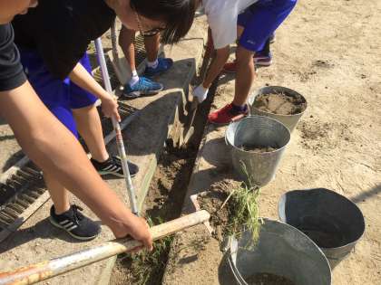 家庭訪問期間を利用して、4月25日(水)から5月1日(火)まで、第2グラウンドの溝清掃を行いました。