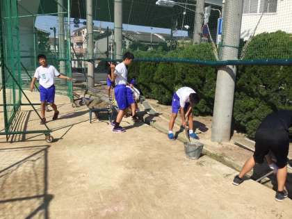 昨日は天気が良く管理作業員の指導のもと、陸上部員の協力を得ての清掃作業でした。