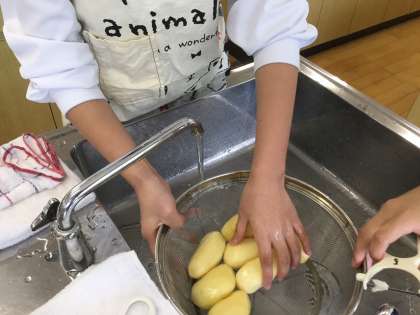 家庭科部の調理実習 いももち1