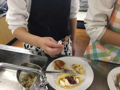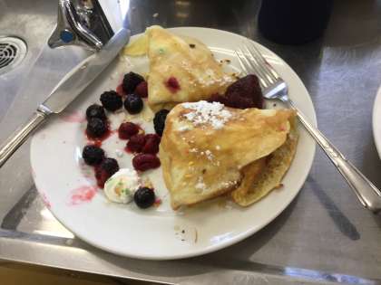 クレープが出来上がったら、皿への盛り付けとなりました。